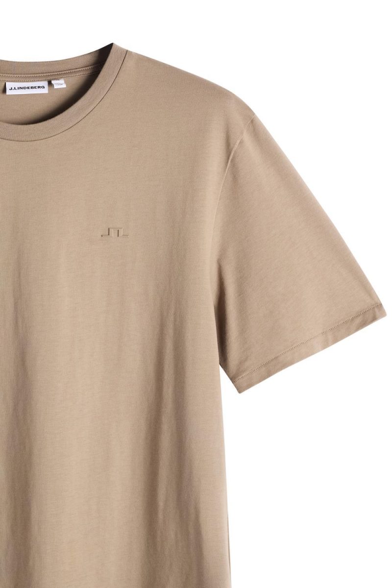 Stilren t-skjorte fra J.Lindeberg. T-skjorten har fine detaljer som logo på brystet og ribbestrikk ved halsen