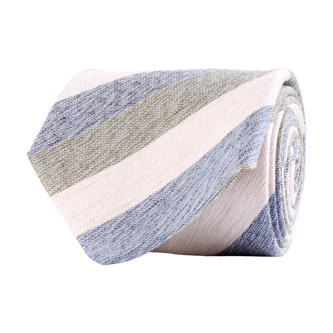 Amanda Christensen Stripes Linen Mix Tie Olive