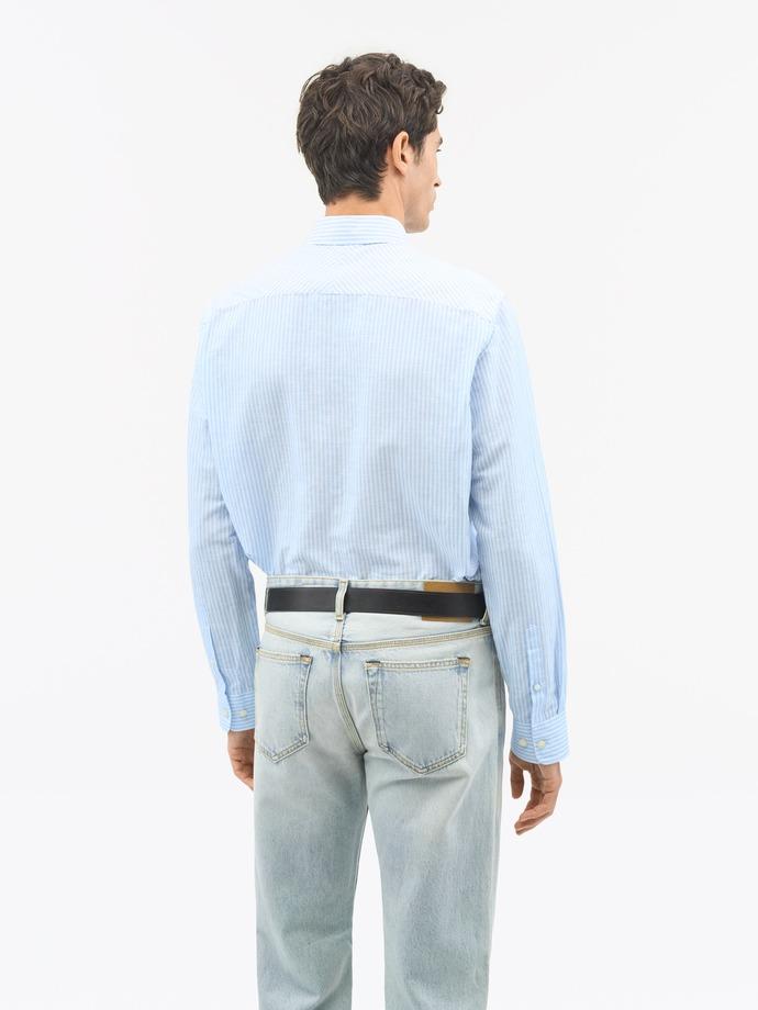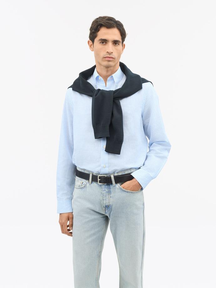 Klassisk linskjorte med striper fra Tiger of Sweden. Skjorten har button down krage og er laget av lin og bomull.