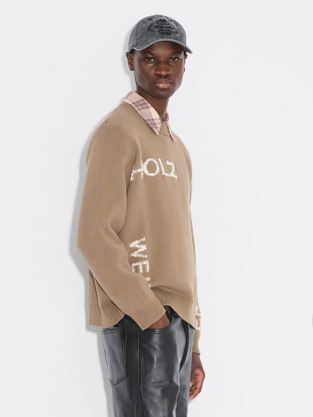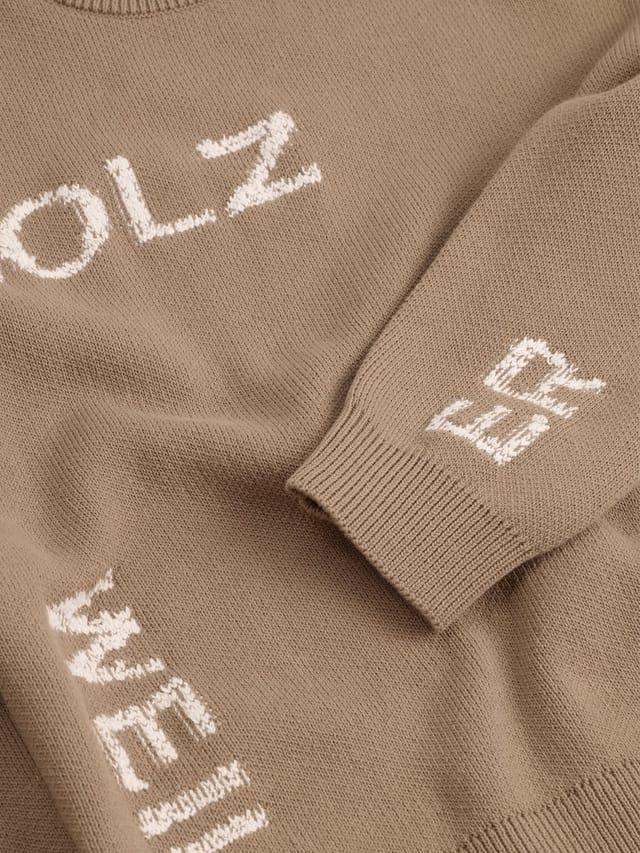 Strikket genser fra Holzweiler. Genseren har rund hals og strikket logo motiv. Genseren er laget av en behagelig bomull/ull/kasjmir blanding.