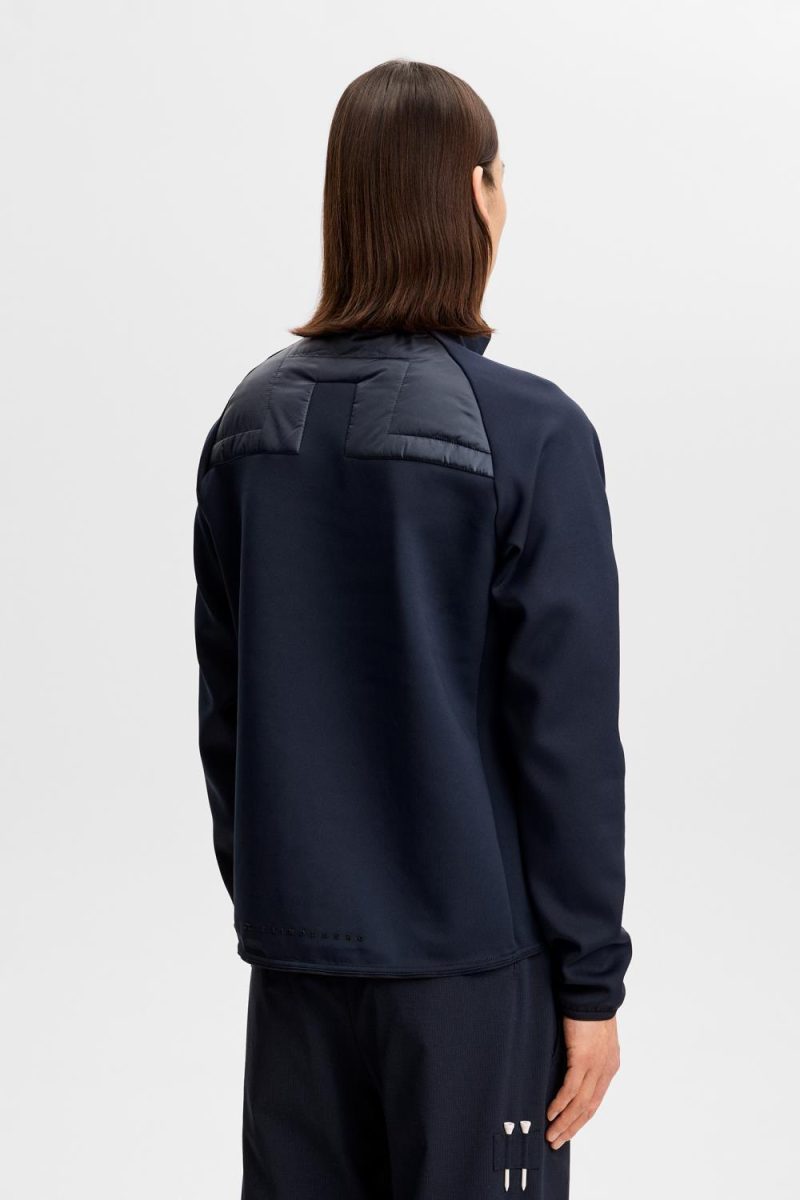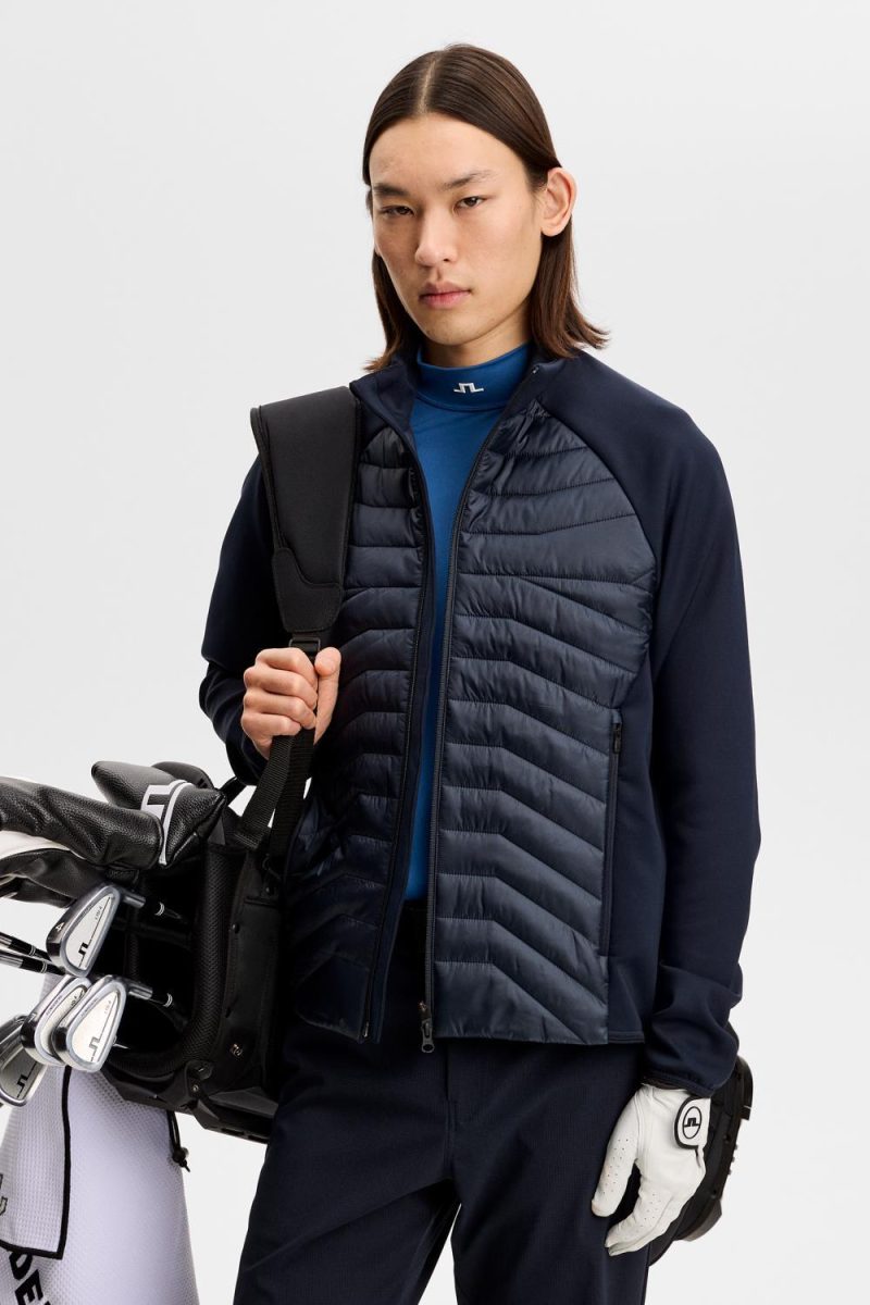 Lett og sporty hybridjakke fra J.Lindeberg. jakken er lett foret med Primaloft foran som strekker seg over skulderpartiet.