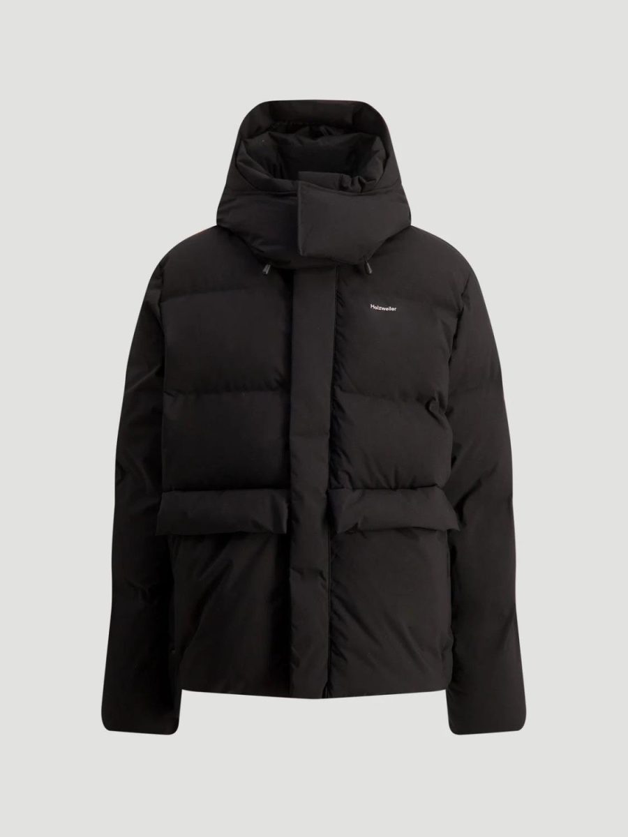 Varm dunjakke fra Holzweiler. Jakken har en membran som gjør den vannavstøtende med en vannsøyle på 10.000. Foret med 80% dun og 20% fjær gjør at den holder deg varm i opptil -15*c, og kaldere med en ullgenser under. Åpnes lukkes med glidelås med borrelåsdeksel.