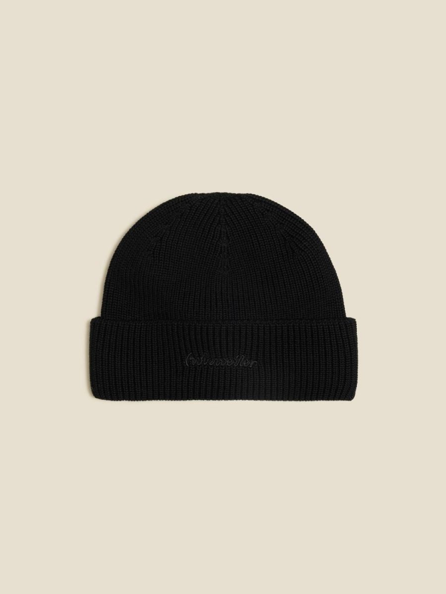 Ribbestrikket lue fra Holzweiler. Luen er laget av merinoull, har en noe løs passform og har en dobbel brett med brodert ton-i-ton «Holzweiler» logo.