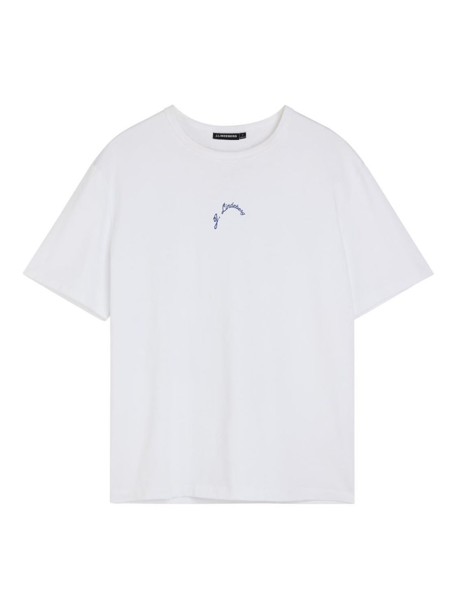 T-Skjorte fra J.Lindeberg. T-skjorten har sentrert J.Lindeberg logo foran og print på ryggen. Laget av tykk organisk bomull i en avslappet passform.