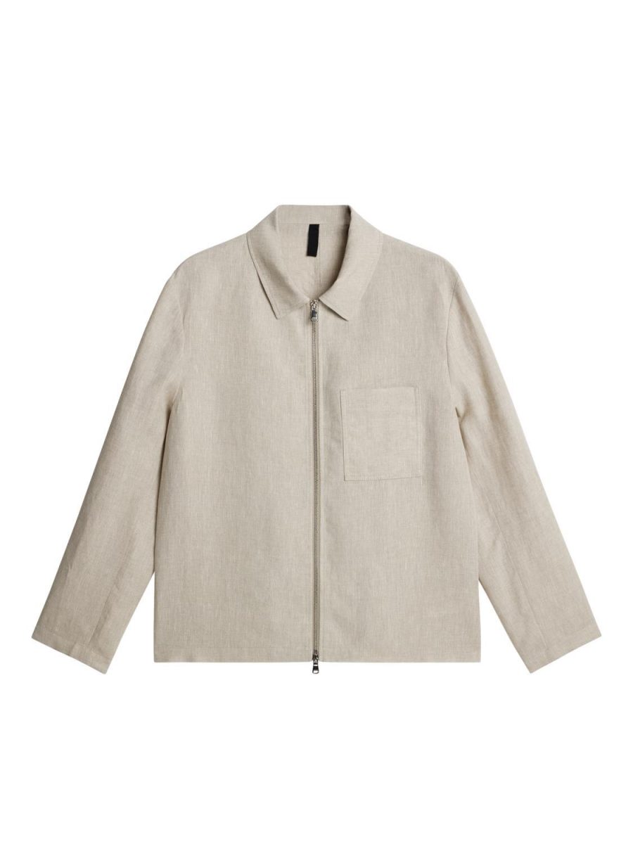 Skjortejakke i lin fra J.Lindeberg. jakken lukkes/åpnes med 2-veis glidelås. Bruk den alene eller sammen med Soren Linen Pants Safari Beige for matchende sett