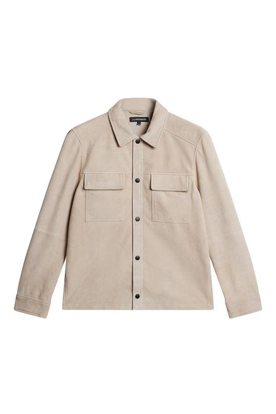 Luksuriøs skjortejakke i semsket skinn fra J.Lindeberg. Jakken har to brystlommer foran med flapp og klassisk skjortekrage. Jakken åpnes/lukkes med trykknapper foran, det er en trykknapp på hver erm.