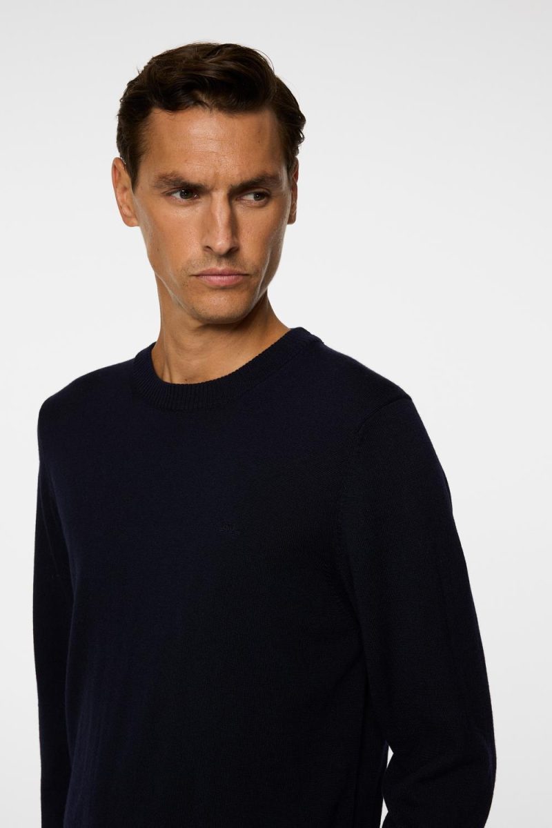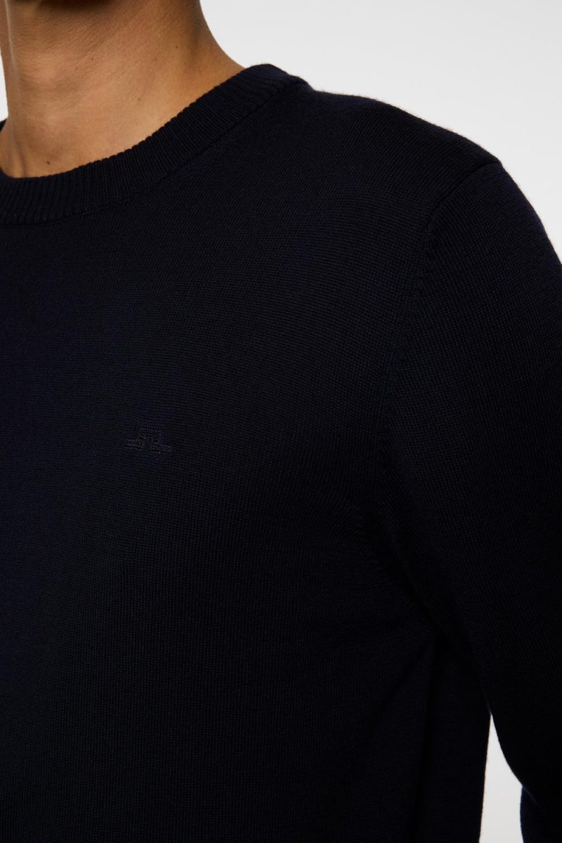 Finstrikket genser med rund hals fra J.Lindeberg. Genseren har fine detaljer som brodert brystlogo og ribbestrikk ved hals, håndledd og midje. Bruk den over en skjorte eller t-skjorte på eller utenfor golfbanen.