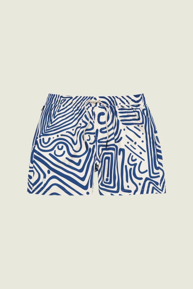 Badeshorts fra OAS. Badeshortsen er laget av et hurtigtørkende materiale og har to skråstilte sidelommer, en baklomme og en lomme på siden med glidelås.