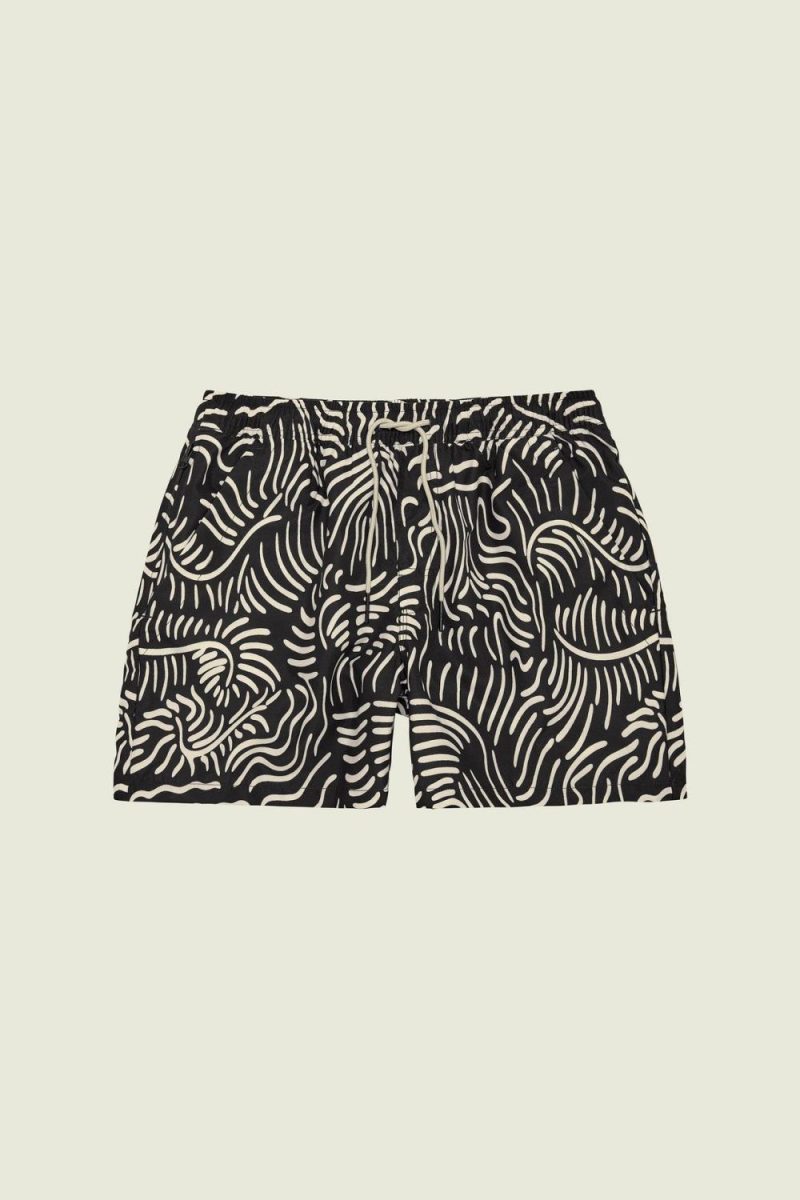 Badeshorts fra OAS. Badeshortsen er laget av et hurtigtørkende materiale og har to skråstilte sidelommer, en baklomme og en lomme på siden med glidelås.
