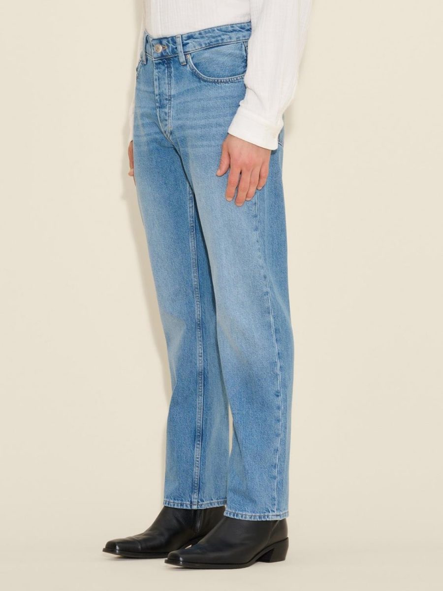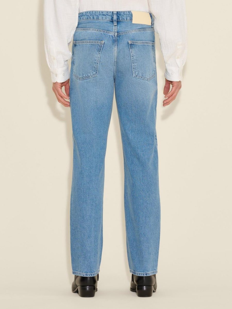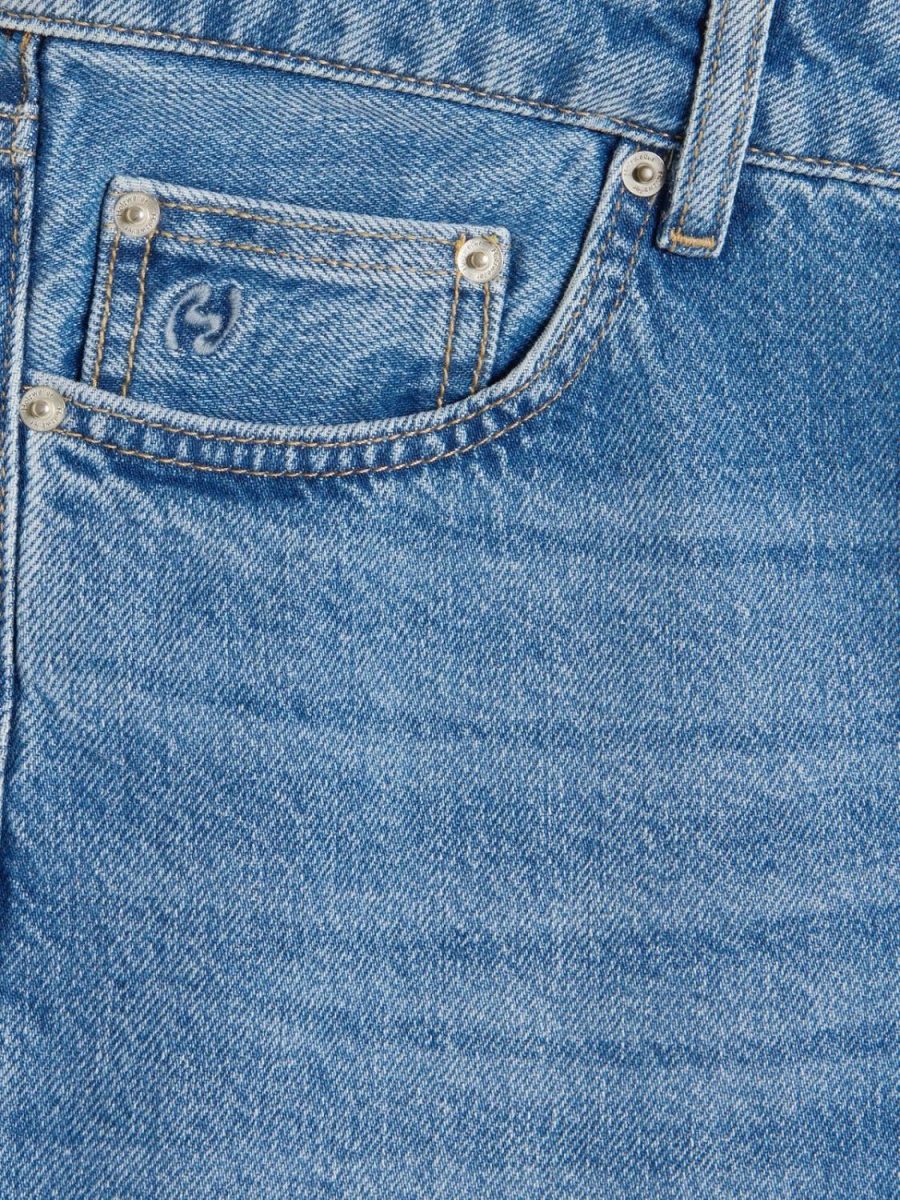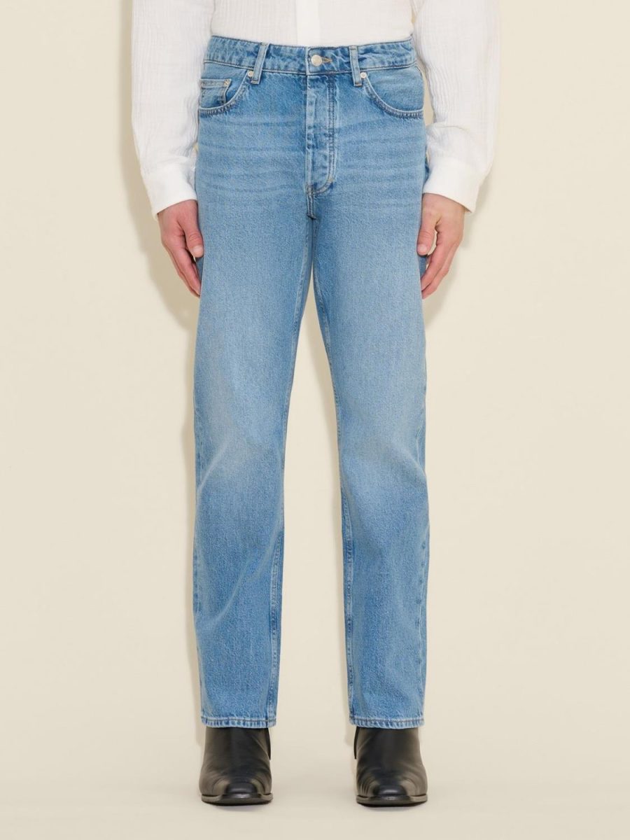 Stilren jeans fra Holzweiler laget av økologisk bomull. Holzweiler Regular Jeans har en behagelig passform som holder formen gjennom dagen. Den rette silhuetten gir et rent uttrykk, perfekt til hverdag. Jeansen kommer med diskré Holzweiler-logo på myntlommen, klassiske fem lommer og en middels livhøyde for optimal komfort.