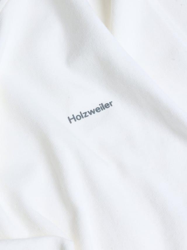 Stilren t-skjorte fra Holzweiler. T-skjorten har logo på brystet og ribbestrikket hals.