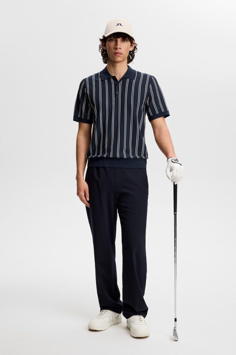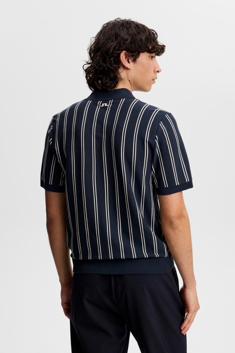 Finstrikket pikè med striper fra J.Lindeberg. Pikeen er myk og elegant og har fine detaljer som ribbestrikk ved midje og overarmer og liten strikket logo bak ved nakken.