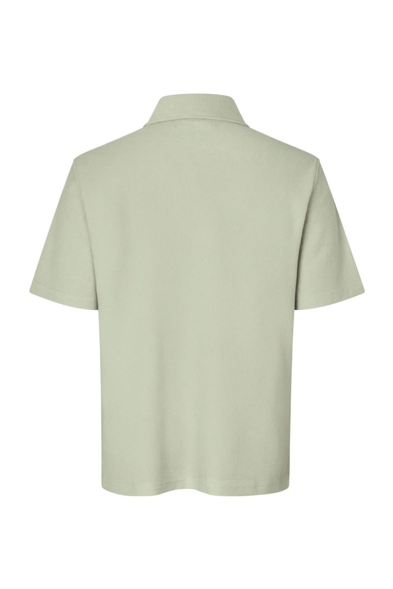 Pikè fra Samsøe Samsøe i lett frotè. Pikeen har klassiske detaljer og en brodert ton-i-ton logo på brystet.