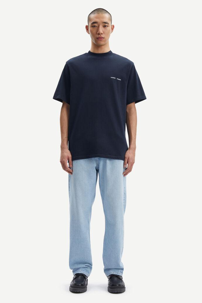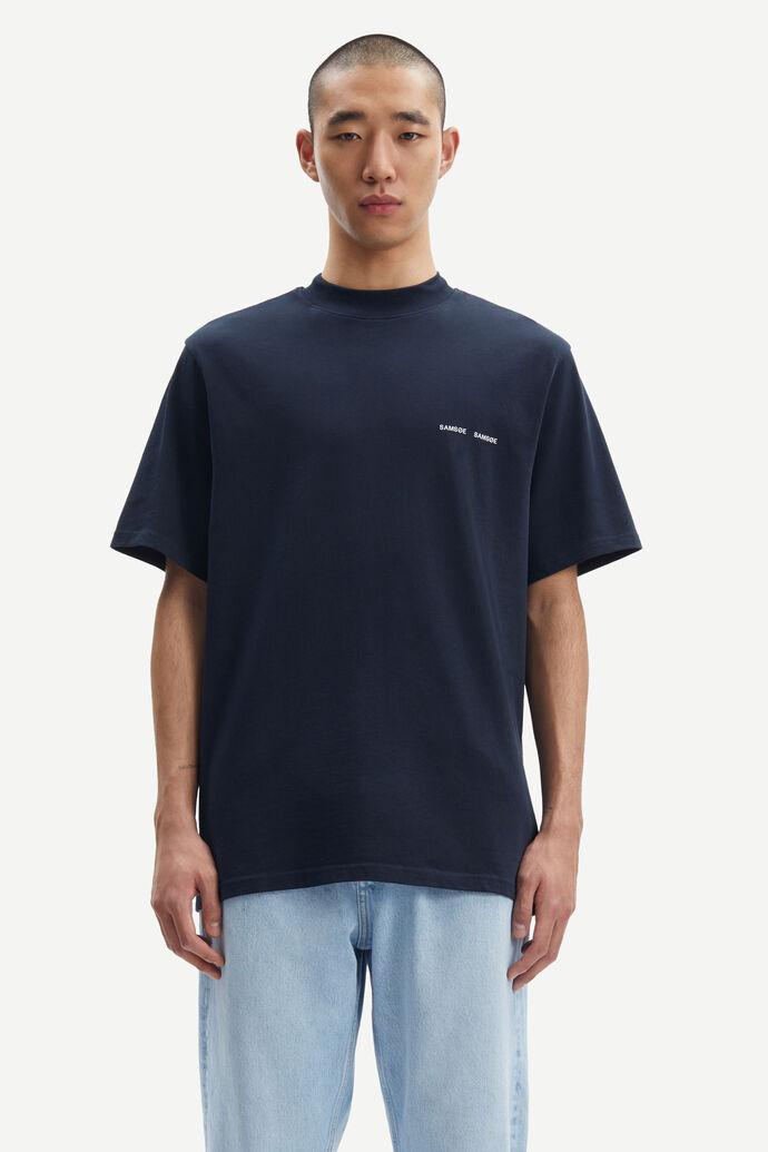 Stilren t-skjorte fra Samsøe Samsøe. T-skjorten har fine detaljer som tettsittende rund hals, søm langs ryggen og brystlogo.