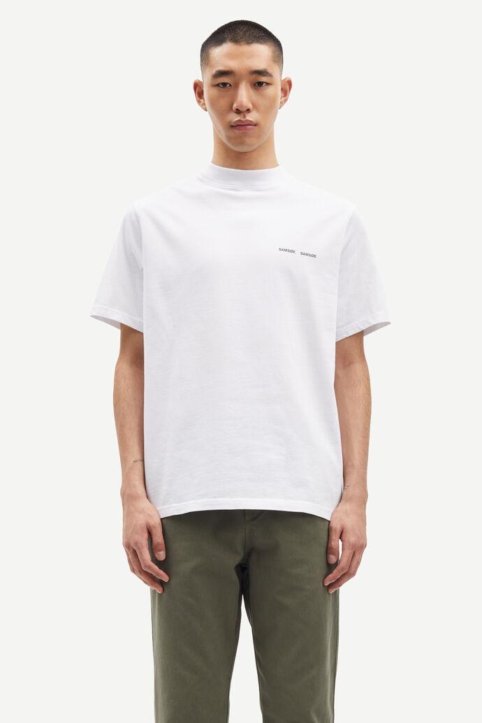 Stilren t-skjorte fra Samsøe Samsøe. T-skjorten har fine detaljer som tettsittende rund hals, søm langs ryggen og brystlogo.