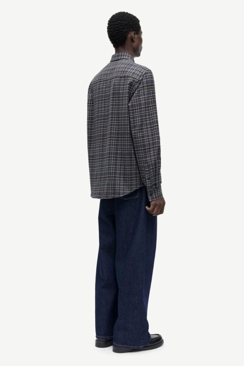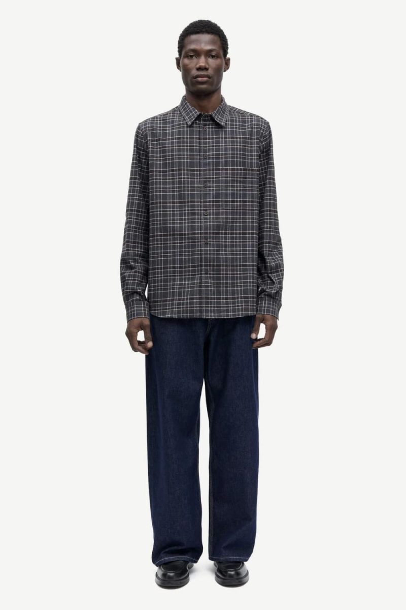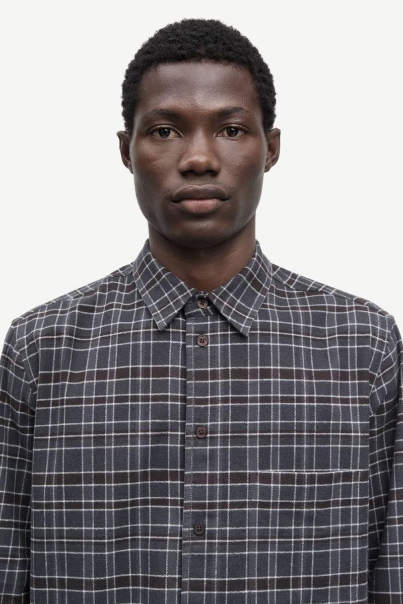 Rutete flanellskjorte fra Samsøe Samsøe. Skjorten har klassisk krage, to knapper ved mansjetten og brystlomme.