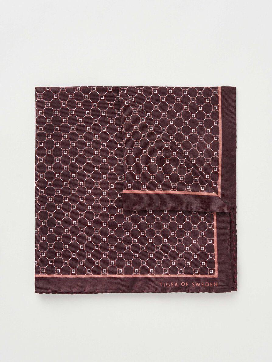 Lommetørkle med print fra Tiger of Sweden i silke. Liten Tiger of Sweden-logo på hjørnet.