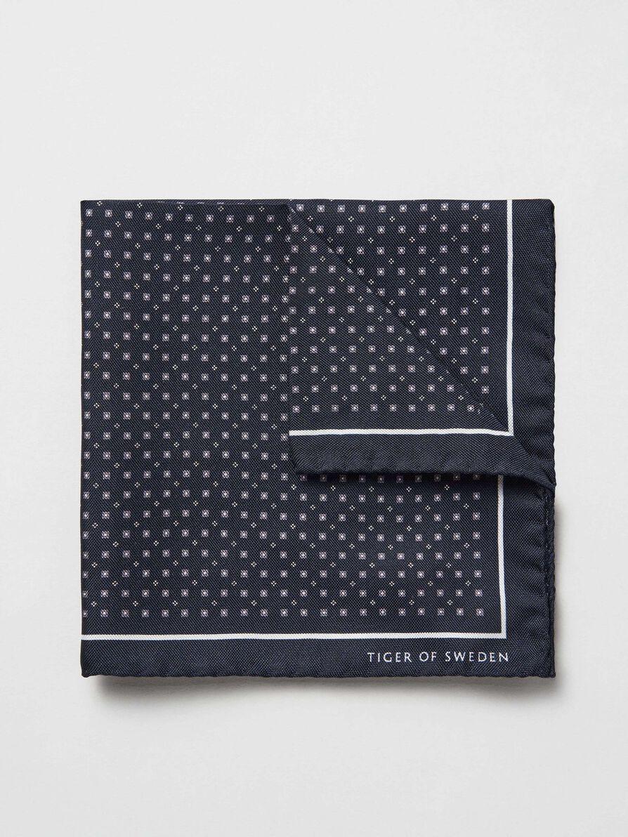 Lommetørkle med print fra Tiger of Sweden i silke. Liten Tiger of Sweden-logo på hjørnet.