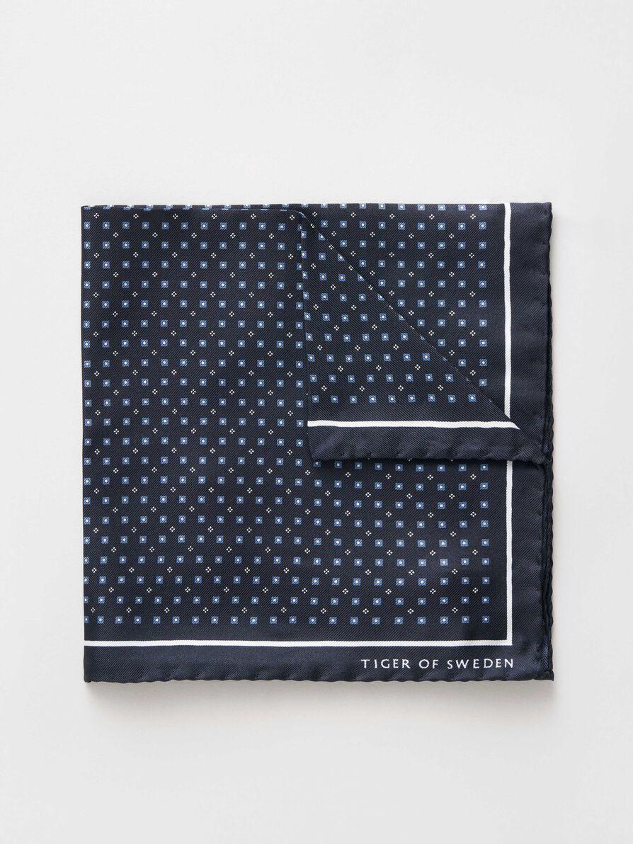 Lommetørkle med print fra Tiger of Sweden i silke. Liten Tiger of Sweden-logo på hjørnet.