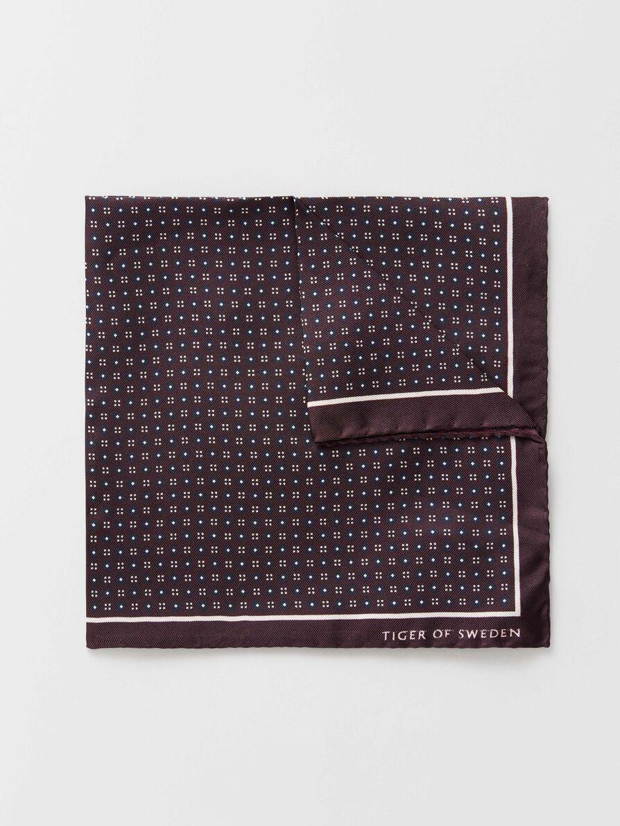Lommetørkle med print fra Tiger of Sweden i silke. Liten Tiger of Sweden-logo på hjørnet.