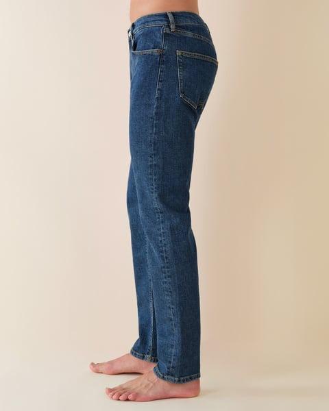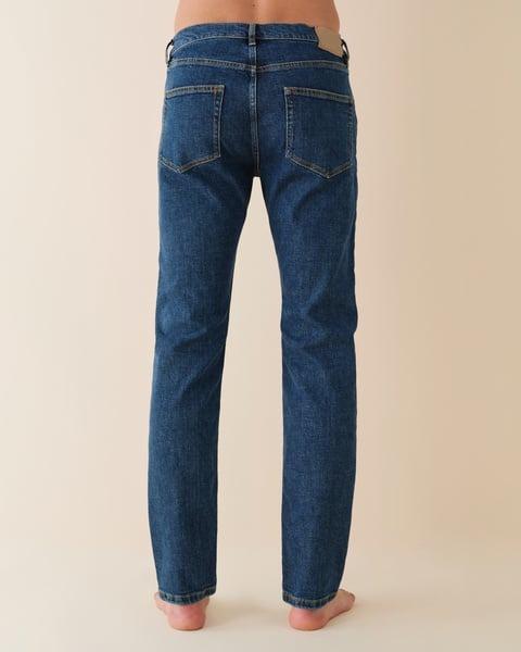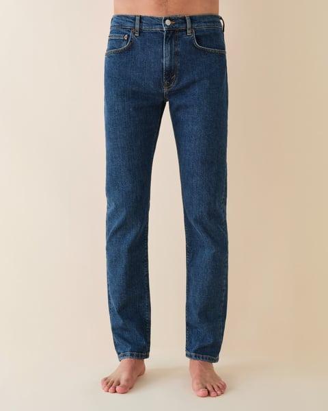 Stilren jeans fra Jeanerica laget av økologisk bomull med noe stretch. Jeanerica TM005 har en avsmalnende, men behagelig passform som holder formen godt. Den avsmalnende silhuetten gir et rent uttrykk, perfekt til hverdag, men også sammen med en blazer. Jeansen har et klassisk fem lommer design, gylf med YKK glidelås og en middels livhøyde for optimal komfort.