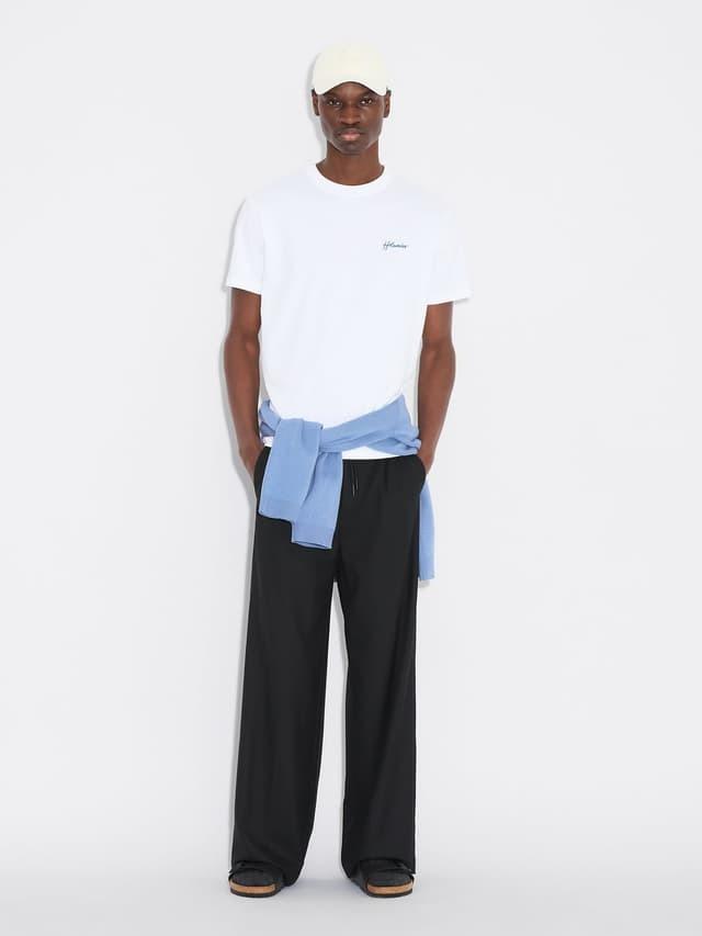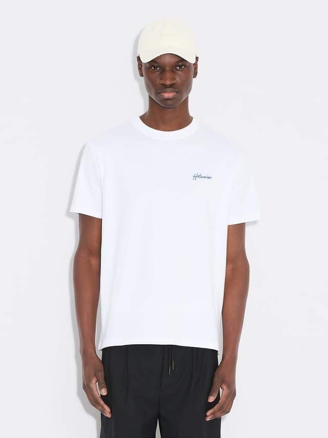 Stilren t-skjorte fra Holzweiler. T-skjorten har fine detaljer som brodert logo på brystet og ribbestrikk ved halsen