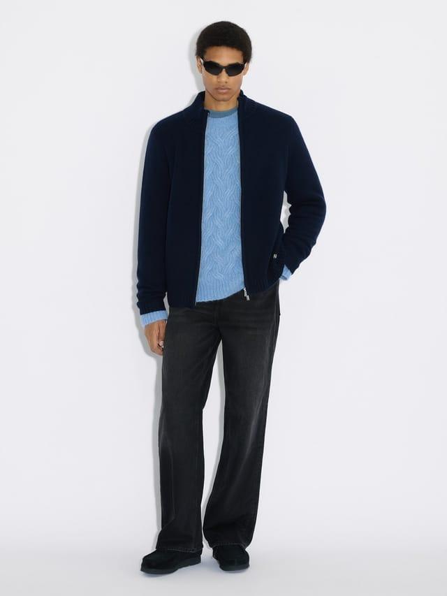 Wool Zip Cardigan Navy